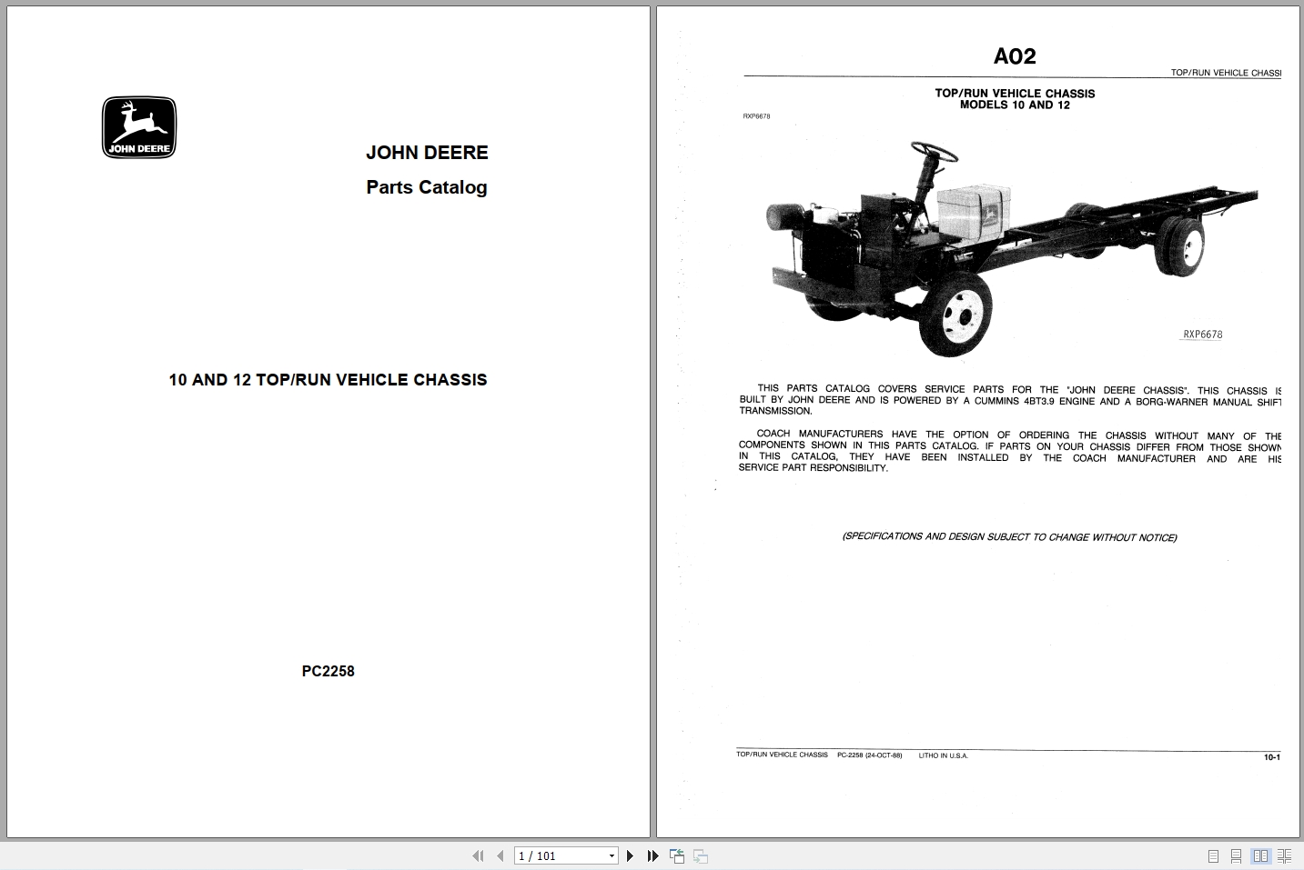 John Deere 10 12 Top Run Vehicle Chassis Parts Catalog PC2258 (1)